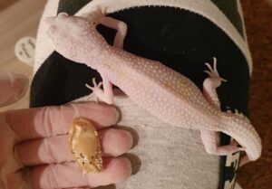 Ausserdem habe ich beobachtet, dass die Tiere bei Calcium- und Vitaminmangel den Bodengrund des Terrariums schlecken. Ich denke dies ist ein Trieb der Tiere der bis heute, auch bei den Tieren in der Terrarium Haltung, weitergegeben wurde. Daher ist es sehr wichtig, dass deine Tiere gutes Vitamin- und Calciumpulver bei der Fütterung erhalten. Dieses Pulver wird über die Futtertiere gestäubt und anschliessend an die Leopardgeckos verfüttert. Bei dem Pulver selbst gibt es grosse Qualitätsunterschiede der Verschiedenen Hersteller. Vitamin/Calcium Pulver Marken von denen ich dringend abrate: Exo Terra, Trixie, Repashy, Dragon. Falls du eine dieser Marke nutzt solltest du diese so schnell wie möglich austauschen. Kontaktiere mich jederzeit über meine Website, um eine Empfehlung zu erhalten. Bei einem Mangel von Calcium bekommen die Tiere sogenannte Rachitis. Diese zeigt sich, indem sich die Knochenstruktur des Tieres auflösen und sich somit die Knochen verformen. In schlimmen Fällen können die Tiere nicht mehr laufen. Eine weit verbreitete Meinung ist, dass Rachitis nicht heilbar bzw. rückgängig gemacht werden könne. In den letzten 11 Jahren habe ich viele Leopardgeckos aus schlechter Haltung mit Rachitis aufgenommen und aufgepäppelt. Alle Tiere haben vollständig ihre Mobilität wieder zurück erhalten und vielen sieht man es kaum an, dass sie Rachitis hatten. Es gibt Leopardgecko Weibchen die äusserlich keine Anzeichen von einer Rachitis haben, aber die geschlüpften Babys rachitische Merkmale zeigen. Das heisst, dass die Weibchen zu wenig Calcium für die Versorgung des Babys hatten und nicht nur die Jungtiere sondern auch die Mütter behandelt werden müssen! Wenn du eine Einschätzung zu deinem Tier brauchst, kontaktiere mich gerne.