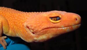Bild von einem schwer verbrannten Leopardgecko, vermutlich von einer UV Lampe die zu stark und falsch montiert wurde: